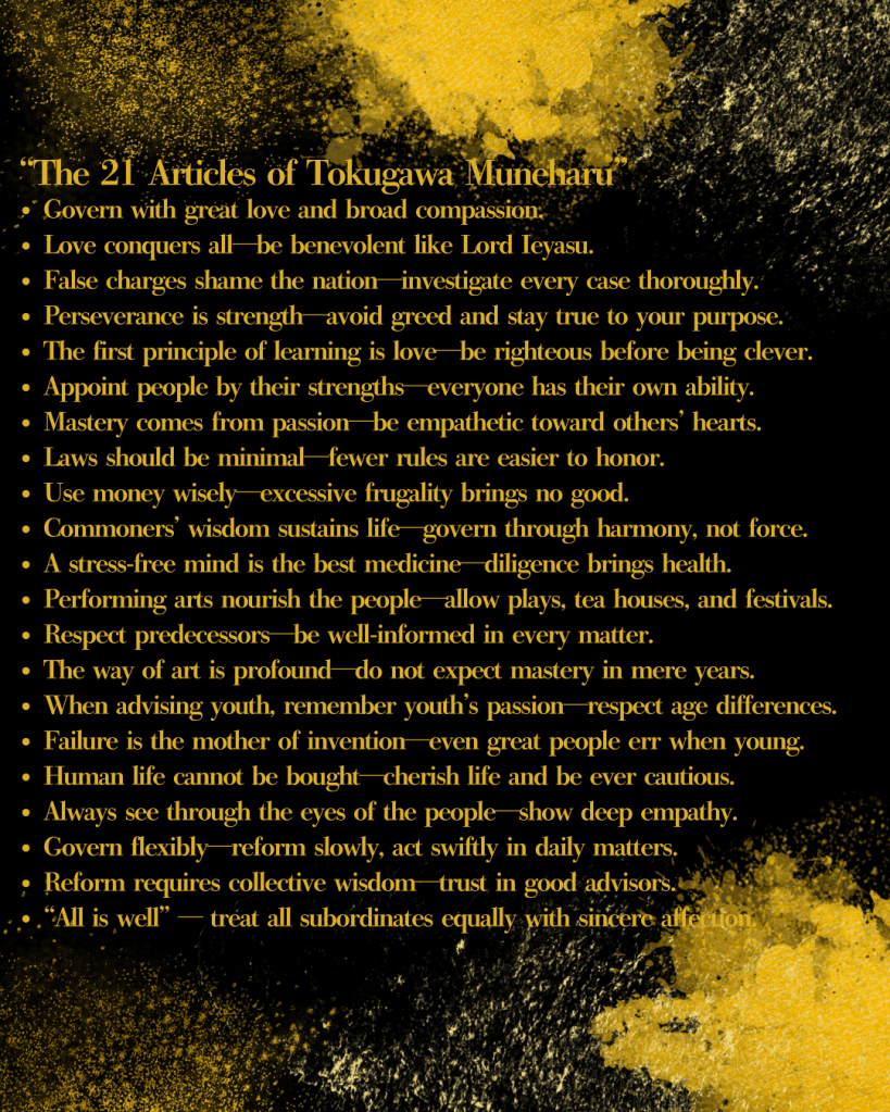The 21 Articles of Instruction Given to His Retainers by Tokugawa Muneharu (1696–1764), the Enlightened Lord of the Owari Domain in the Edo Period