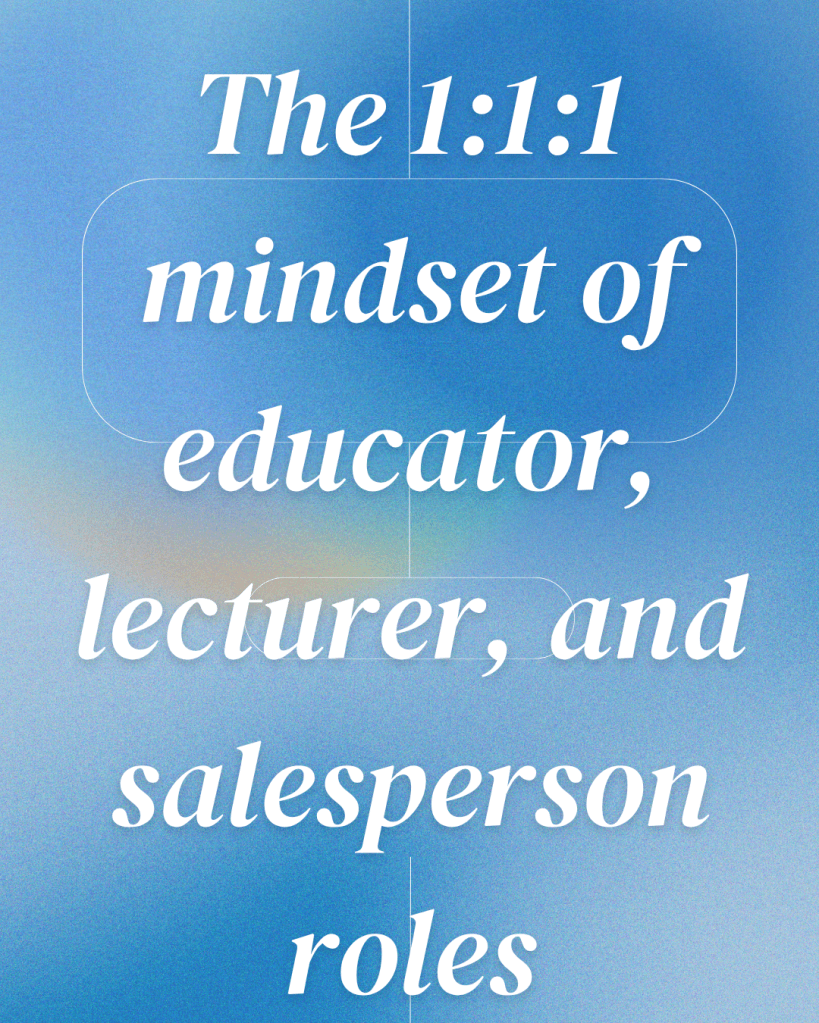 But I believe both school and cram school teachers should embody all three roles — teacher, lecturer, and salesperson — equally.